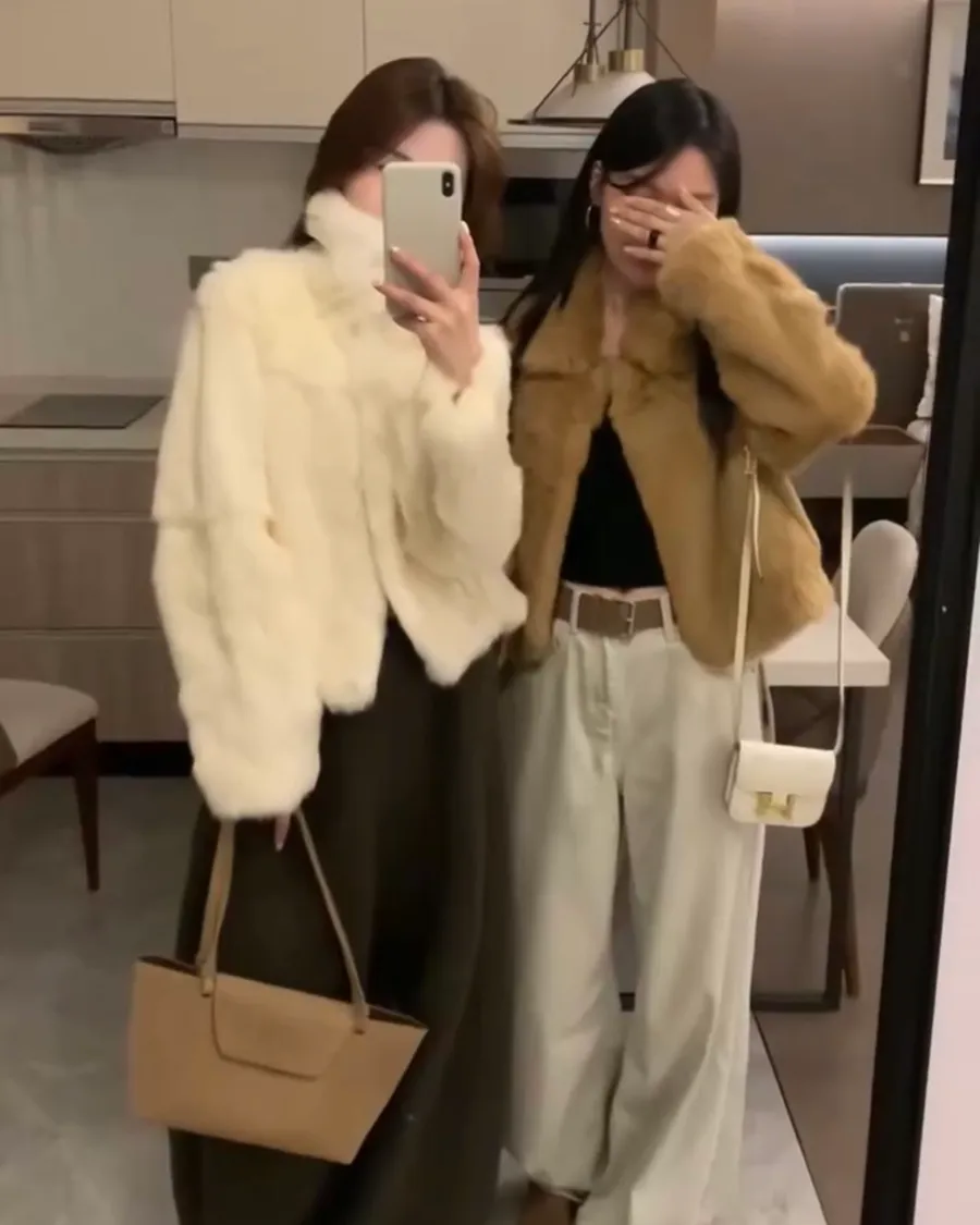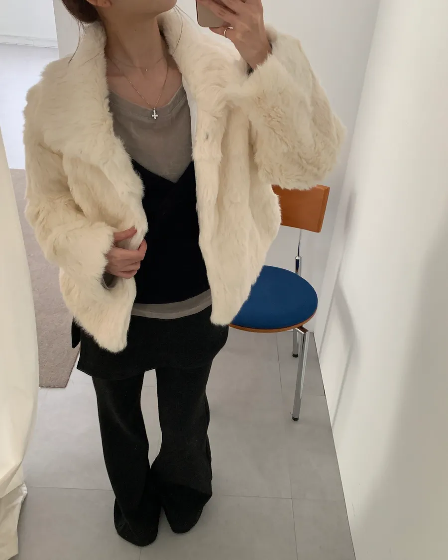 兔毛外套-杏