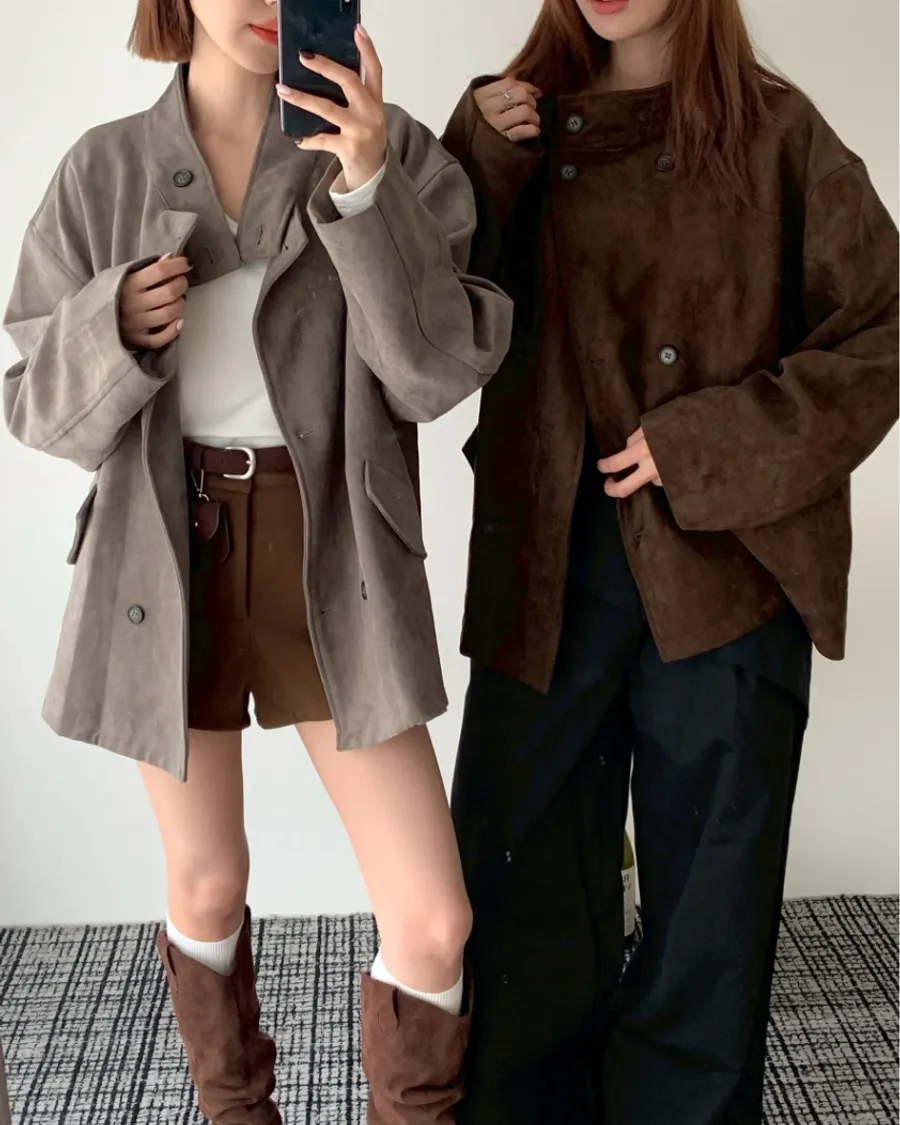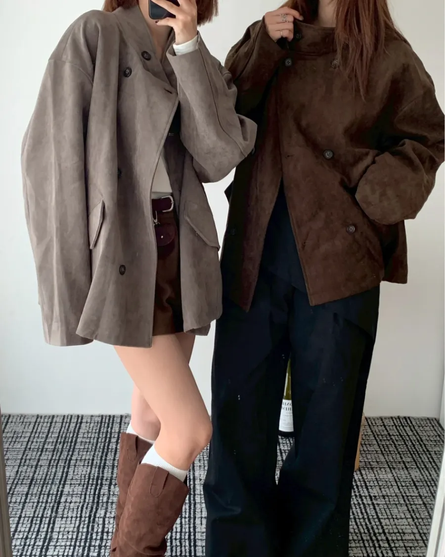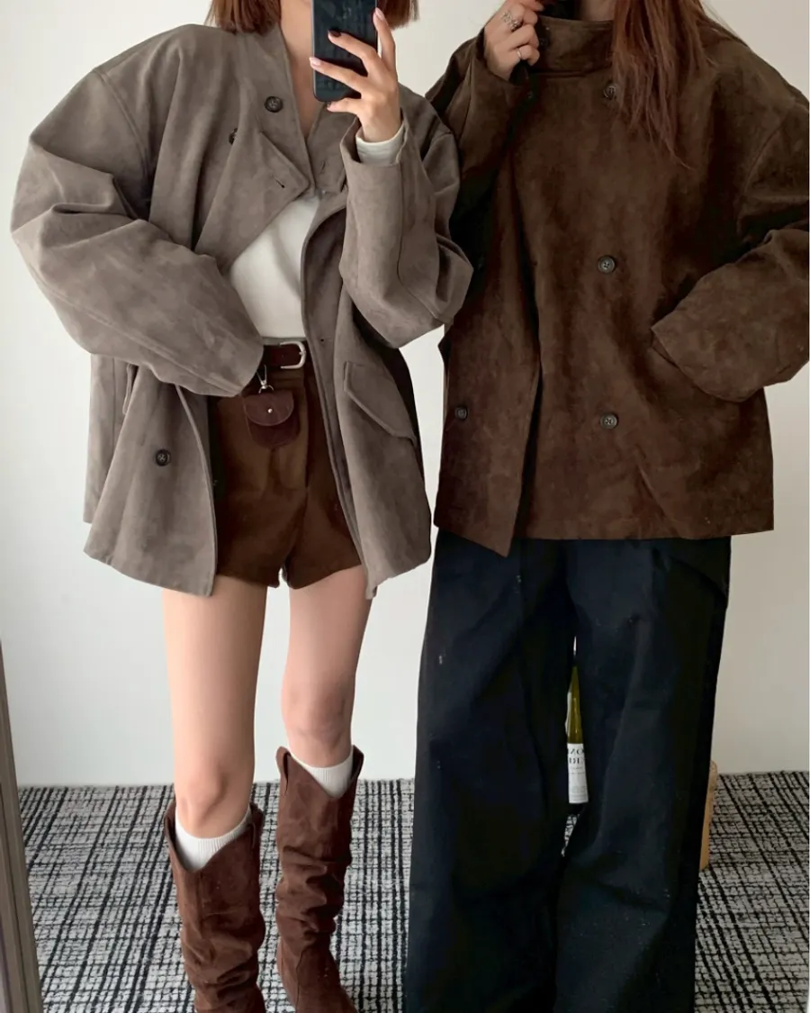 大衣感麂皮外套(附包包)- 咖色