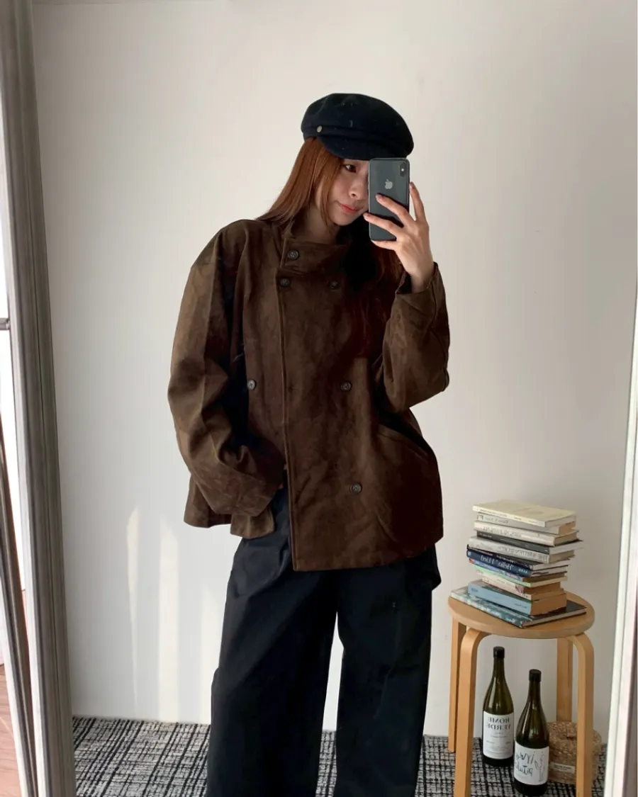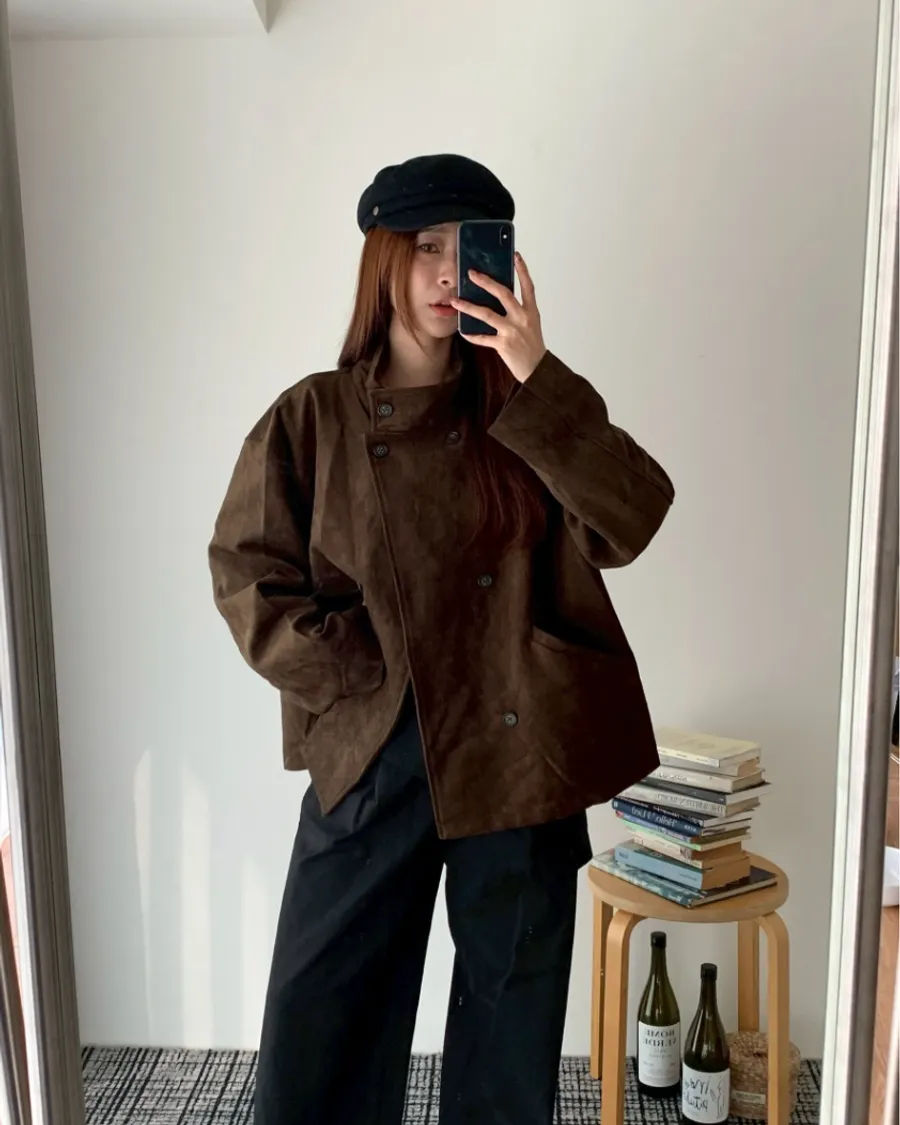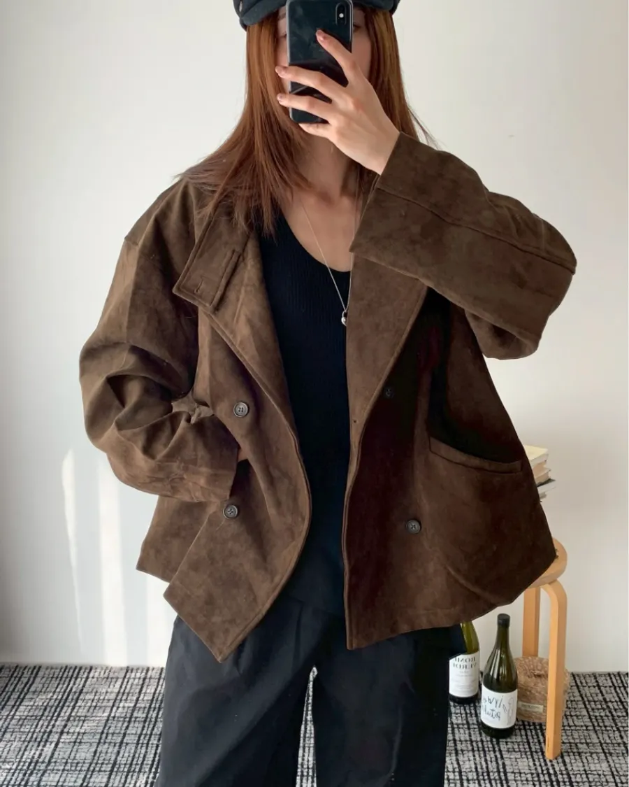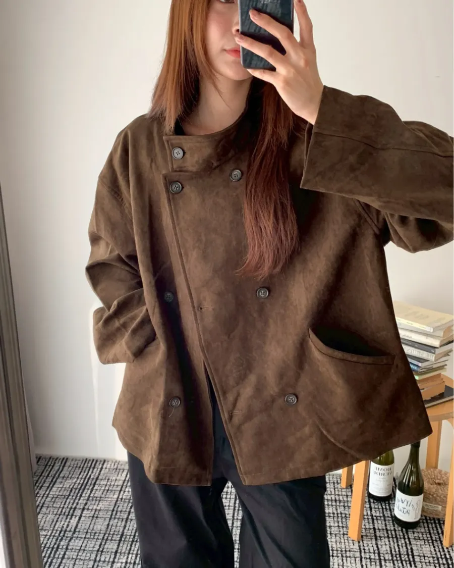 大衣感麂皮外套(附包包)- 咖色