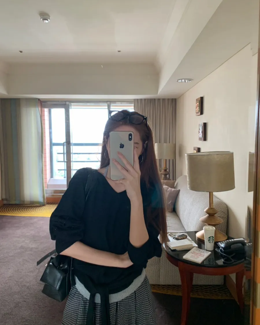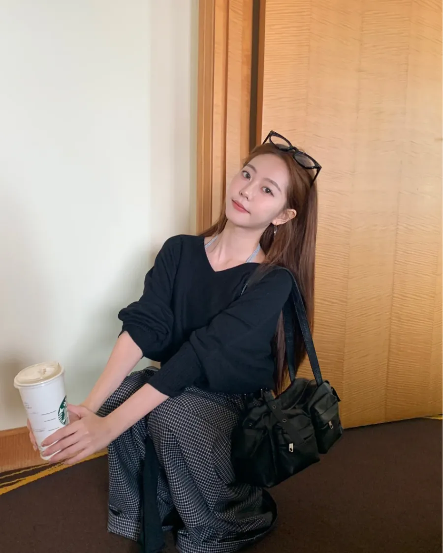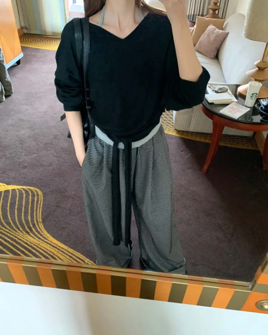 針織綁帶兩件式 - 黑色